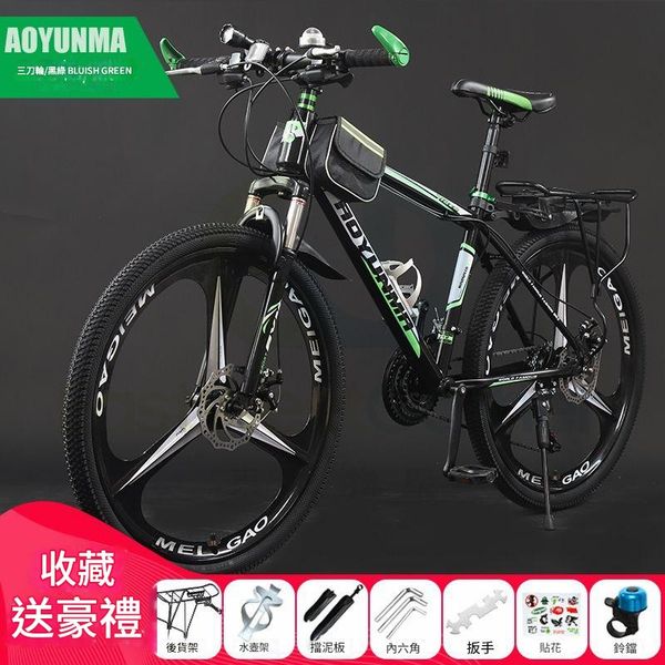 單車 24速26吋 彩圈-旗艦減震版 黑綠色 三刀一體輪 包安裝送貨-山地車 自行車 變速單車 Bicycle 腳踏車 Mountain bike 越野單車(N22491-78)