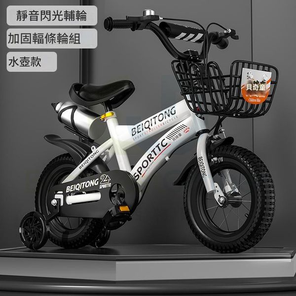 兒童單車 12寸(身高80-95CM,约2-3歲) 高配白色[高強度車圈]+閃光輪+水壺+禮包 包安裝送貨-四輪車 帶輔助轆 小童單車 兒童自行車 生日禮物(N22499-01)