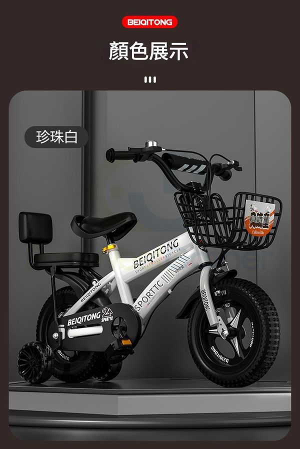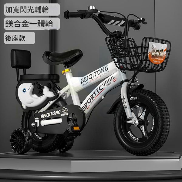 兒童單車 20寸(身高125-145CM,约8-12歲) 尊享白色[合金一體輪]+加寬暴君閃光輪+後座+禮包+護網 包安裝送貨-四輪車 帶輔助轆 小童單車 兒童自行車 生日禮物(N22499-65)