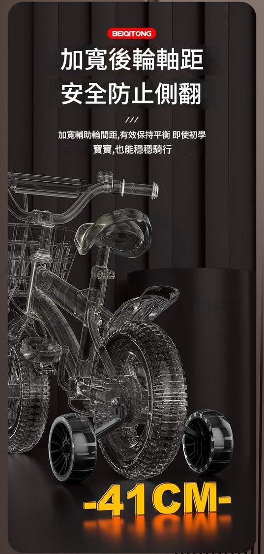 加寬後輪軸距,安全防止側翻。加寬輔助輪間距,有效保持平衡即使初學寶寶,也能穩穩騎行