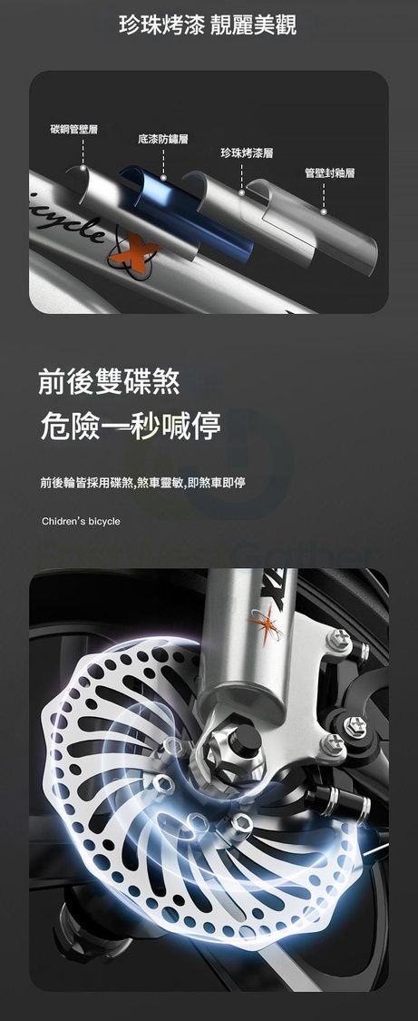 前後雙碟煞,危險一秒喊停。前後輪皆採用碟煞,煞車靈敏,即煞車即停