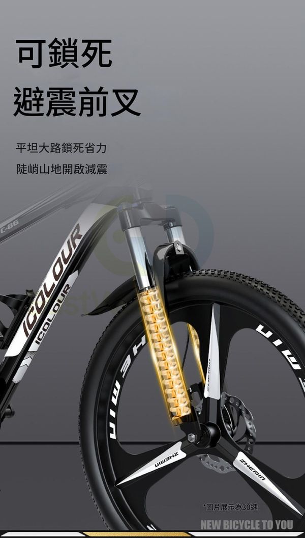 可鎖死避震前叉,平坦大路鎖死省力,陡峭山地開啟減震