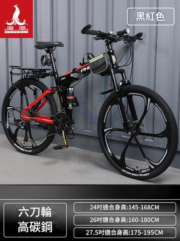 折疊單車 26英寸27速 鋼架六刀輪-黑紅色 包安裝送貨-山地車 變速單車 自行車 Mountain Bicycle 腳踏車 Folding Bike 越野單車 外出旅行(N22690-122)