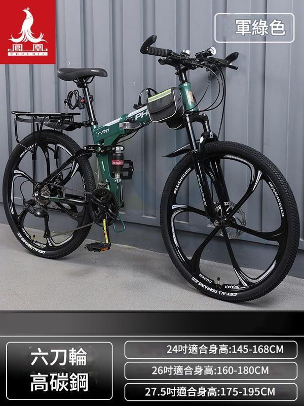 折疊單車 26英寸27速 鋼架六刀輪-軍綠色 包安裝送貨-山地車 變速單車 自行車 Mountain Bicycle 腳踏車 Folding Bike 越野單車 外出旅行(N22690-131)
