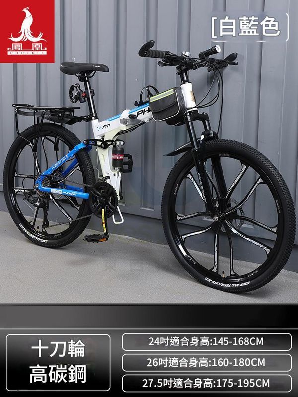 折疊單車 26英寸27速 鋼架十刀輪-白藍色 包安裝送貨-山地車 變速單車 自行車 Mountain Bicycle 腳踏車 Folding Bike 越野單車 外出旅行(N22690-140)
