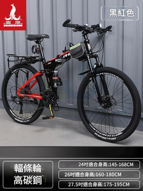 折疊單車 26英寸24速 鋼架輻條輪-黑紅色 包安裝送貨-山地車 變速單車 自行車 Mountain Bicycle 腳踏車 Folding Bike 越野單車 外出旅行(N22690-97)