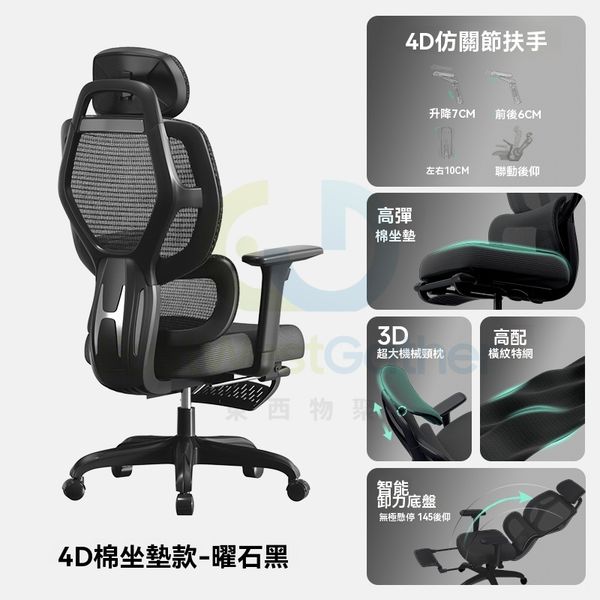包安裝送貨-經典款【曜石黑】乳膠坐墊+橫紋特網+擱腳+4D扶手+三級氣杆 、鋁合金腳 -電競椅 學習椅 電腦椅 辦公椅 寫字樓椅子