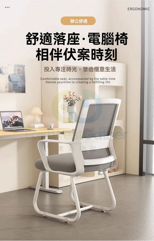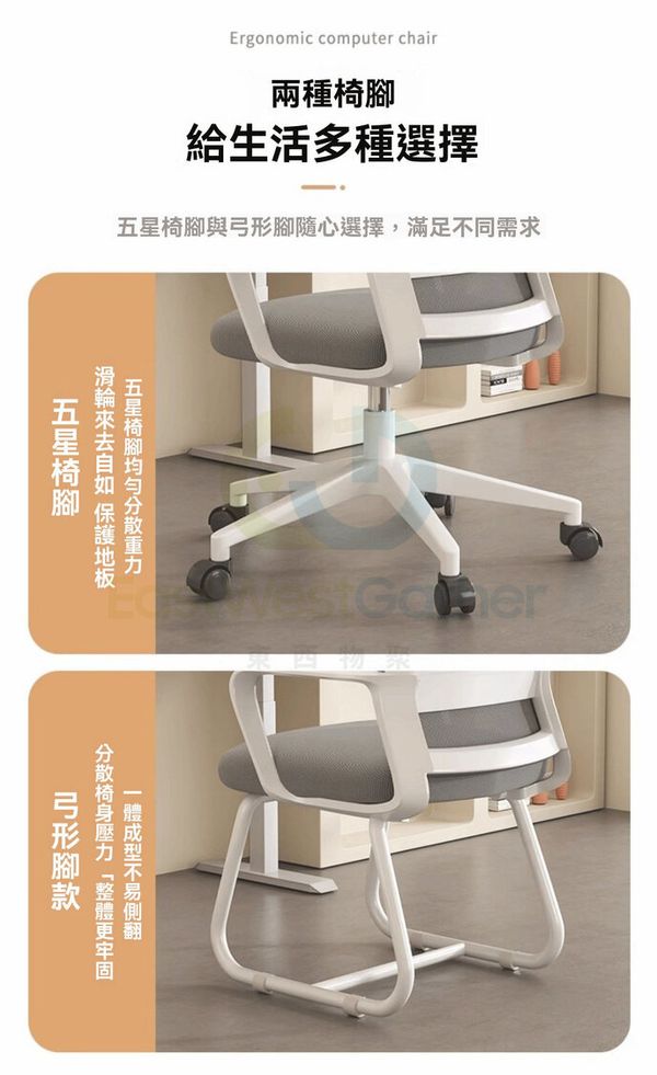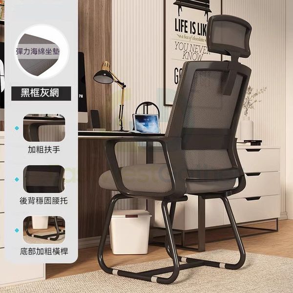 包安裝送貨-【弓形腳】黑框 灰網+升降頭枕(寬厚腰拖) 、鋼制腳 -電競椅 學習椅 電腦椅 辦公椅 寫字樓椅子