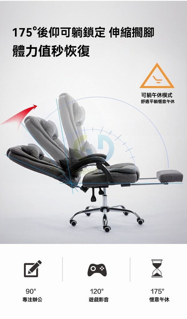 包安裝送貨-灰色耐磨防皮+搁脚+按摩、钢制脚 、固定扶手-電競椅 學習椅 電腦椅 辦公椅 寫字樓椅子