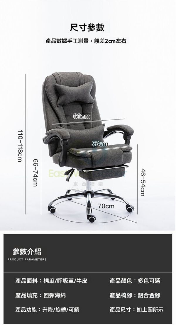 布艺家用办公椅电竞直播椅升降可躺旋转椅舒适久坐人体工学真皮椅