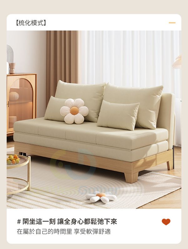 伸縮設計,梳化秒變床,坐著看書,靠著追劇,還可以躺著休息。