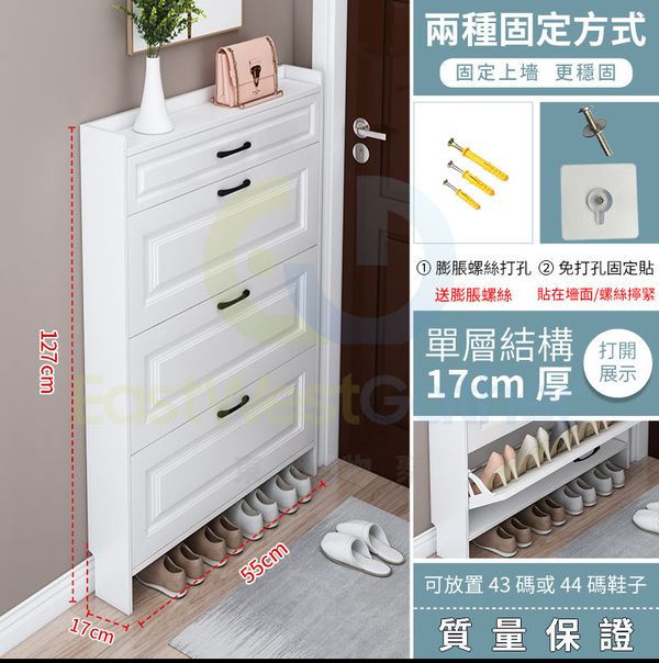 包安裝送貨-長55厚17高127(單層一個抽屜)升級版底部可放鞋鞋柜 鞋櫃 翻斗柜 玄關柜 鞋架(T20931-14)