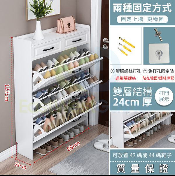 包安裝送貨-長80厚24高127(雙層兩個抽屜)升級版底部可放鞋鞋柜 鞋櫃 翻斗柜 玄關柜 鞋架(T20931-30)