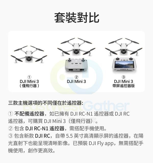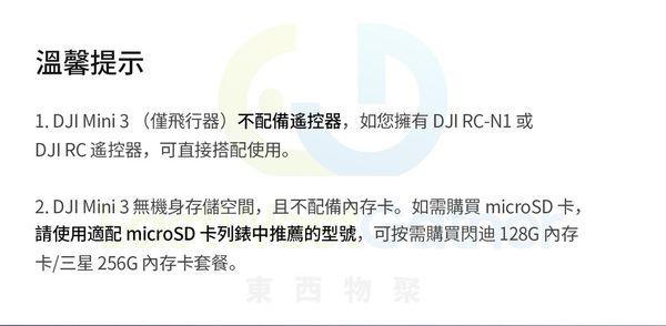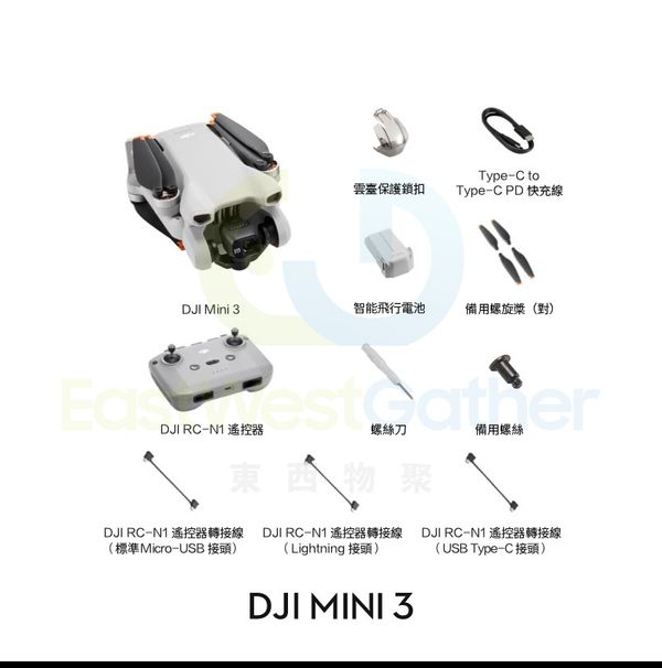包送貨-大疆DJI Mini 3優選迷你航拍機-RC-N1遙控器版-隨心換1年版- 官方標配無人機(T20940-02)