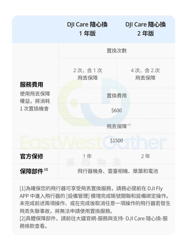 款式二:隨心換1年版(1年內2次置換權益,包含1次飛丟置換機會)