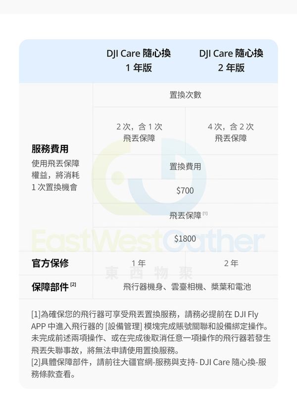 款式二:隨心換1年版(1年內2次置換權益,包含1次飛丟置換機會)