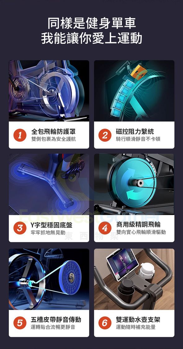 款式2: 物磁雙阻+全包飛輪+靜音+APP+加粗車架+加大車身健身單車
