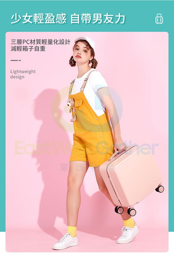 包安裝送貨-[20寸]-茱萸粉[小清新]小型輕便可登機免托運行李箱 旅行喼 行李喼 旅行箱 拉桿箱 密碼箱(T20964-41R)