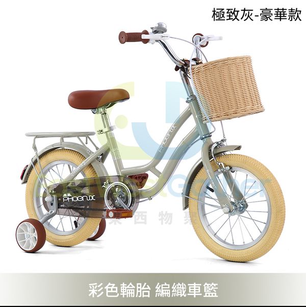 包安裝送貨-[12寸]-豪華款-極致灰-彩胎+編織車筐-兒童單車 小童自行車 腳踏車 聖誕生日禮物(T21006-01)
