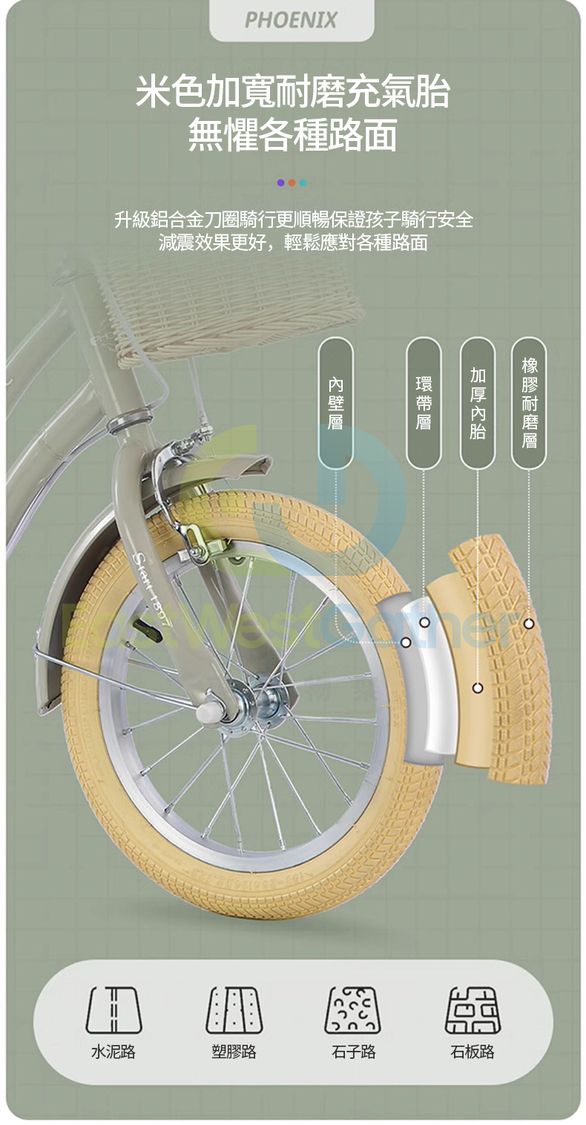 3.加寬耐磨充氣胎,陞級鋁合金刀圈,騎行更順暢,保證孩子騎行安全,减震效果更好,輕鬆應對各種路面