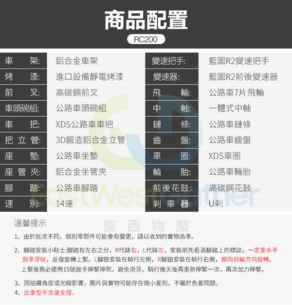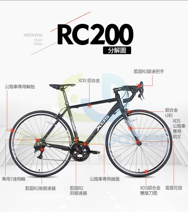 RC200成人公路14速騎行單車競速自行車腳踏車賽車