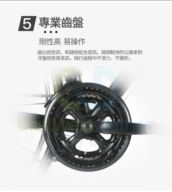 6.專業齒盤,齒比剛性高,和鏈條配合度高。 踏頻較快的公路車對牙盤剛性需求高,騎行過程中不泄力、不變形。