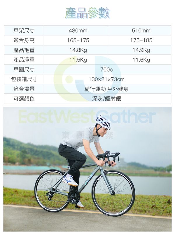 包安裝送貨-RC200-黑銀480mm -成人公路14速RC200骑行單車 競速自行車 腳踏車 賽車(T21009-02)