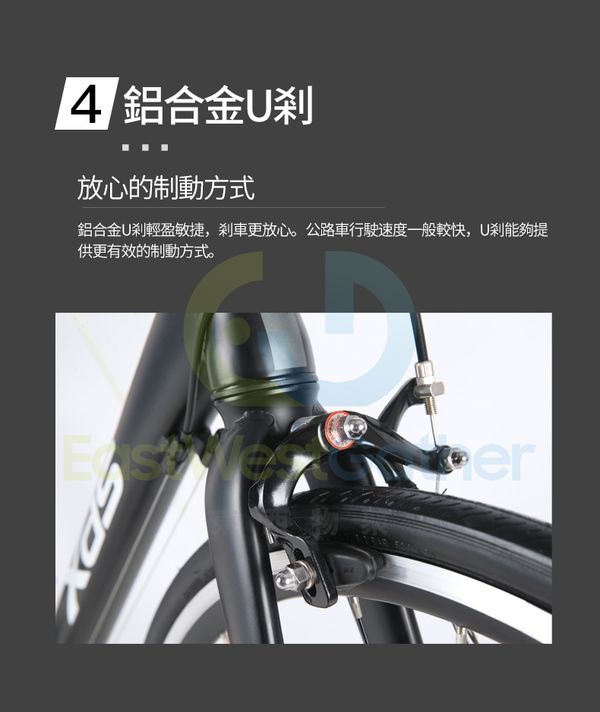 5. 鋁合金U刹輕盈敏捷,刹車更放心。 公路車行駛速度一般較快,U刹能够提供更有效的制動管道。