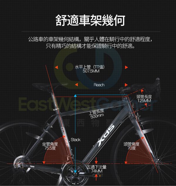 1. 公路車的車架幾何結構,關乎人體在騎行中的舒適程度只有精巧的結構才能保證騎行中的舒適。