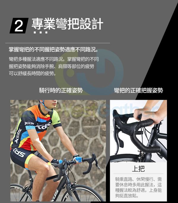3. 專業彎把設計。 掌握彎把的不同握把姿勢能够消除手腕、肩頸等部位的疲勞可以舒緩長時間的疲勞