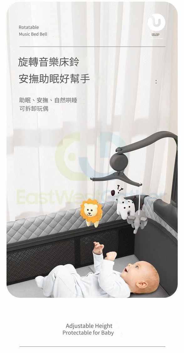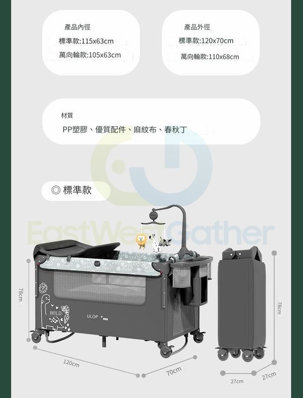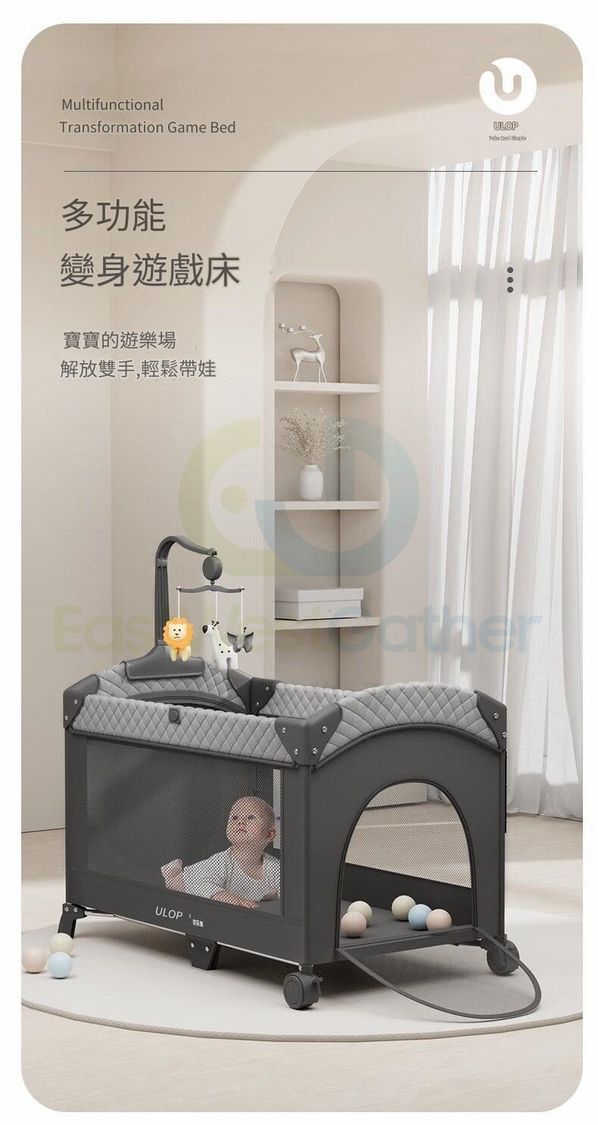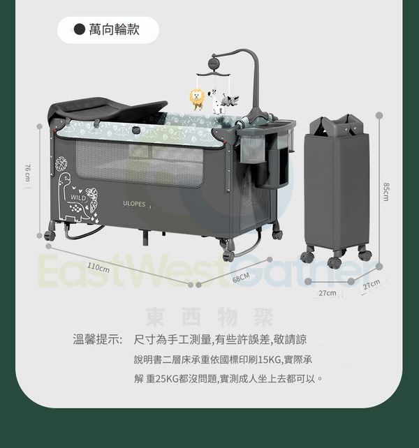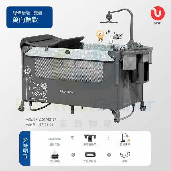 包送貨-小恐龍-【陞級萬向輪款搖搖床】 新生嬰兒床 兒童床 寶寶床 BB床 可拼接升降嬰兒遊戲床(T21043-03)