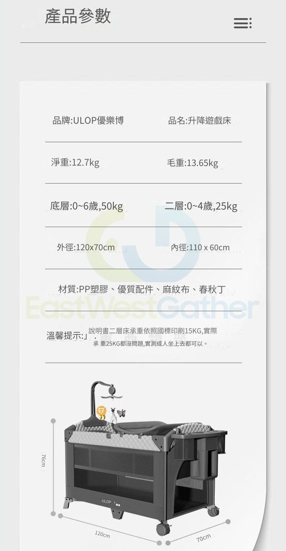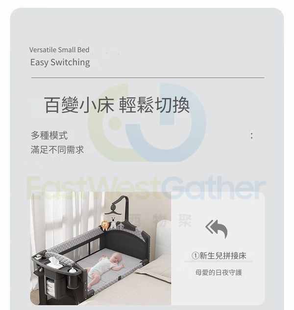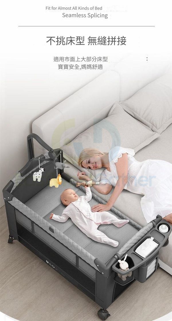 多功能可調節折疊嬰兒床 防摔可拼接大床 新生兒寶寶床