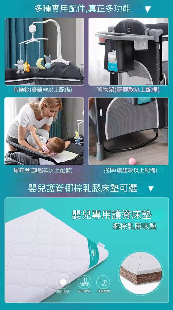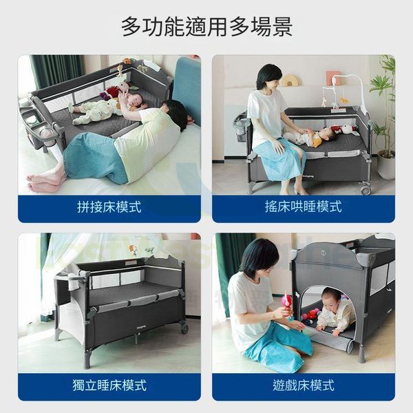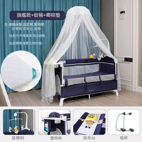 多功能可調節折疊嬰兒床 防摔可拼接大床 免安裝新生兒寶寶床【旗艦款+椰棕乳膠床墊+蚊帳】