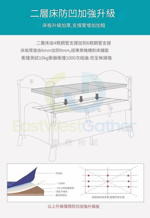 二層床防凹加强陞級,床板陞級加厚,支撐管新增加粗