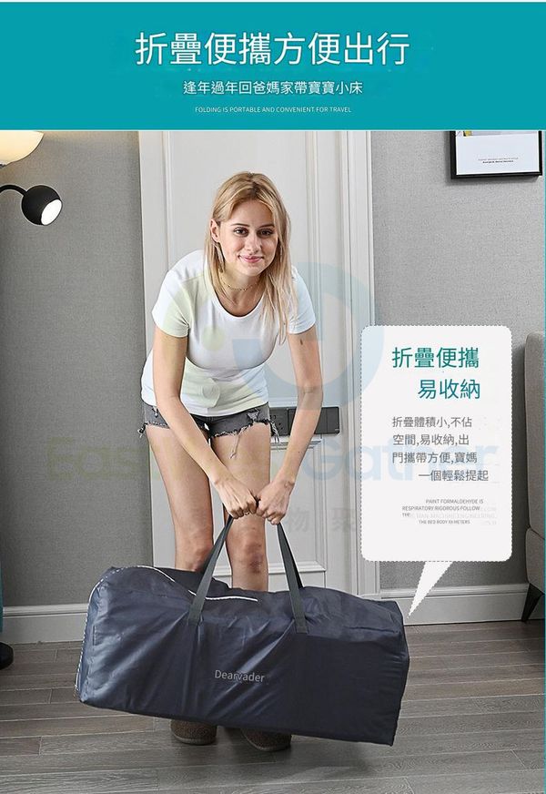 包送貨-可折疊可擕式旅行床-藏青色-旗艦版+椰棕乳膠床墊+蚊帳 新生嬰兒床 兒童床 寶寶床 BB床(T21044-14)