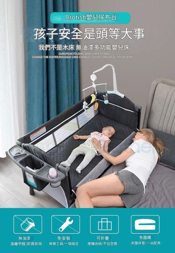 和大床拼接,方便照看寶寶,承重力强,有圍欄適用