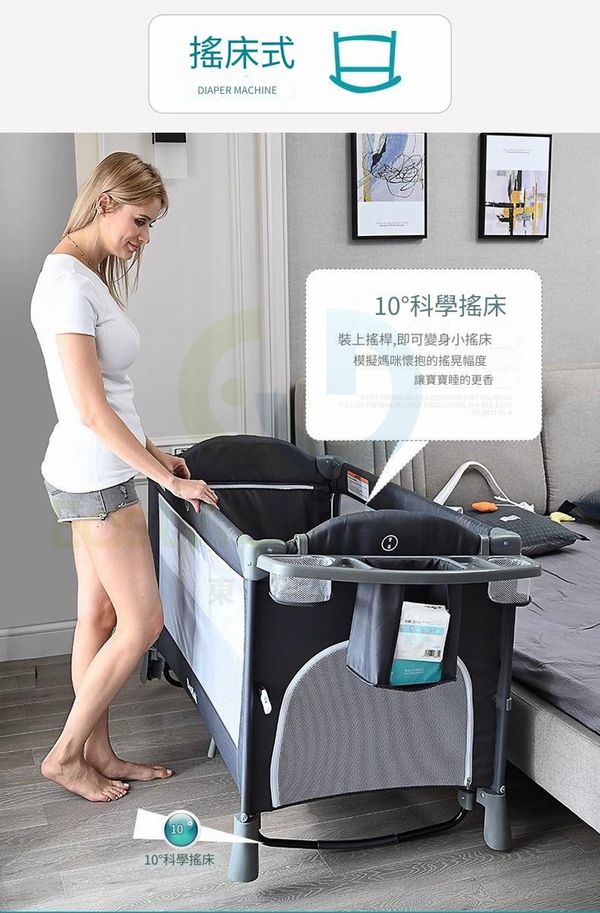 10°科學搖床,裝上搖杆,即可變身小搖床類比媽咪懷抱的搖晃幅度讓寶寶睡的更香