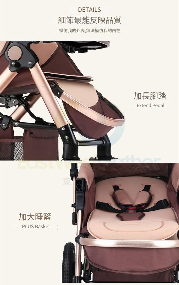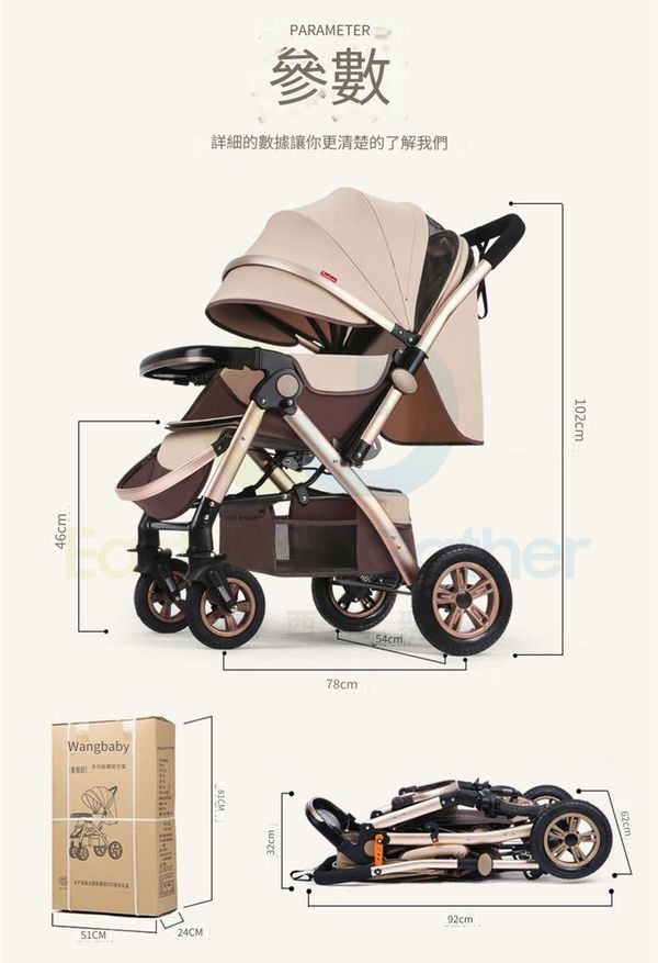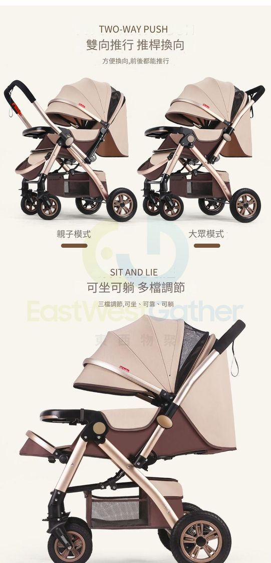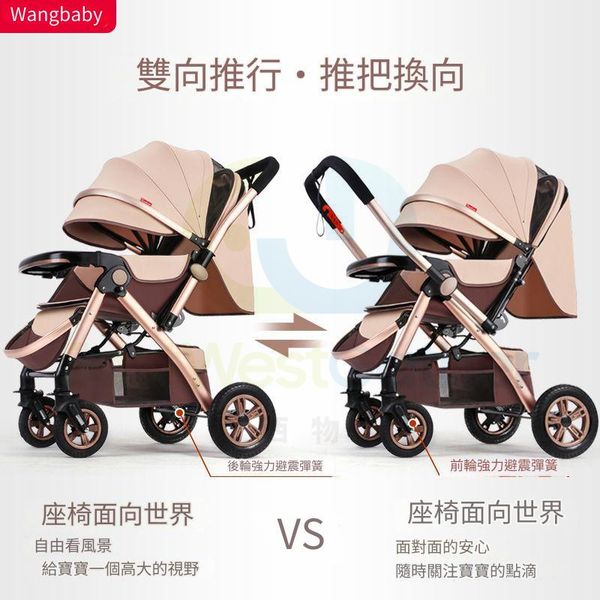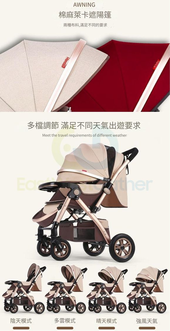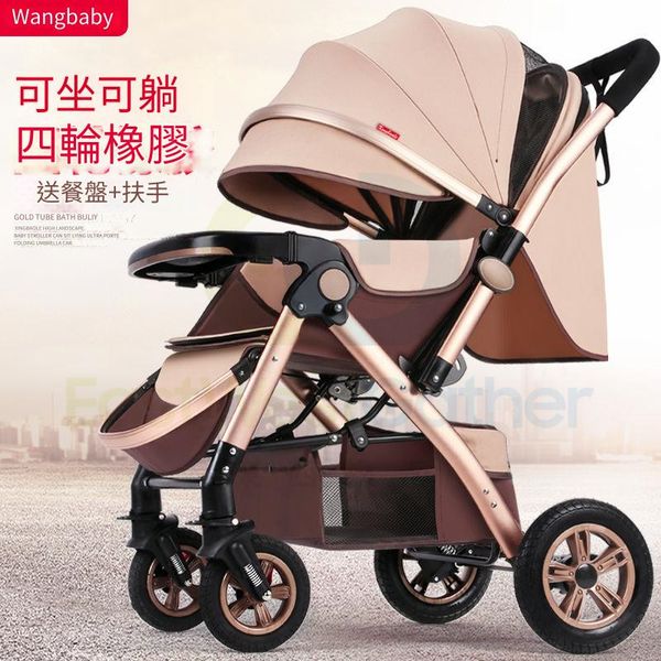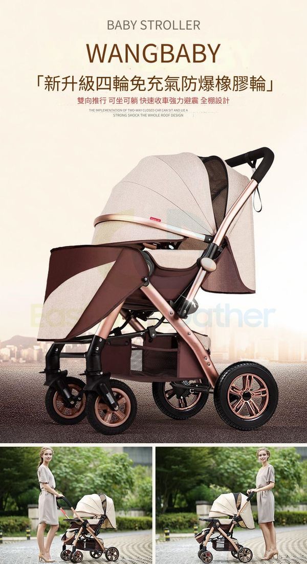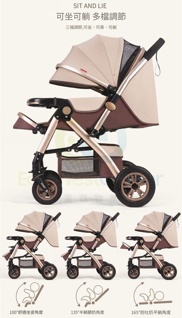 四輪避震高景觀嬰兒車,手推車可坐可躺折疊,寶寶推車兒童車bb車