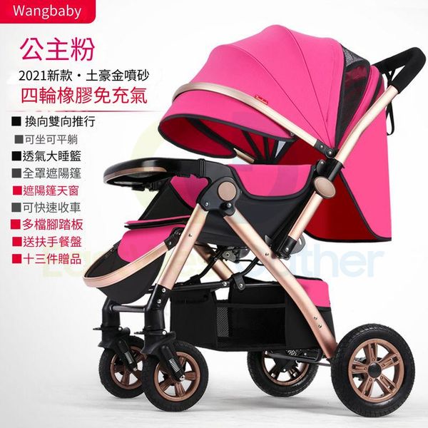 包送貨-【旗艦款橡膠四輪】公主粉 輕便可折疊高景觀嬰兒手推車 寶寶傘車 BB車 兒童推車