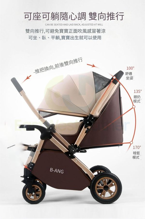 3. 雙向推行,可避免寶寶正面吹風感冒著涼可坐、臥、平躺,寶寶出生就可以使用