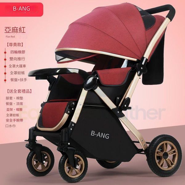包送貨-高景觀新生嬰兒手推車【尊貴版】亞麻紅(四輪橡膠避震) 寶寶車 兒童手推車 BB車(T21050-02)