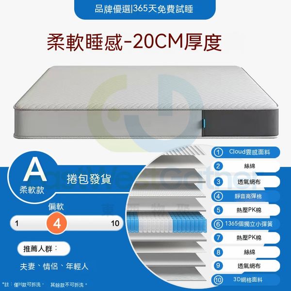 包送貨-135cm*200cm - A款-柔軟款【靜音高彈棉】-(厚度約20cm)實用之選 壓縮記憶棉床褥 彈簧床褥 可全拆洗床褥墊 厚床墊 軟墊(T22037-57)