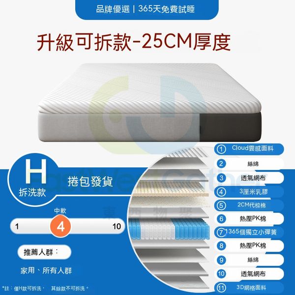 包送貨-150cm*200cm - H款-拆洗款【3cm乳膠+2cm代棕棉】- 壓縮記憶棉床褥 彈簧床褥 可全拆洗床褥墊 厚床墊 軟墊(T22037-80)