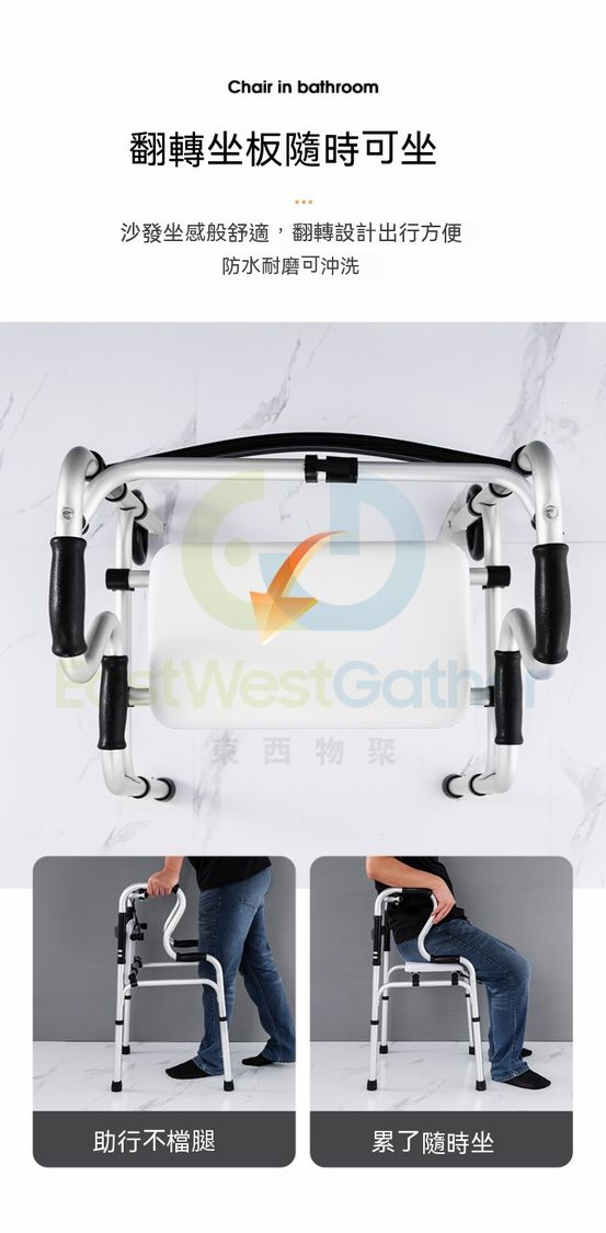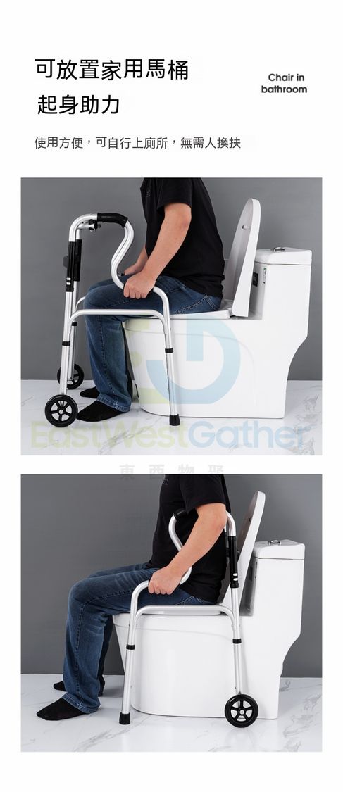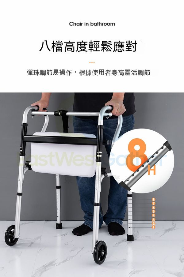 包送貨-7205雙彎主架+坐便器 復康助行架 老人助行器 四腳拐杖 殘障者助行器 復健老人助步器 行路拐杖 助力車 老年扶手架 輔助行走器(T22038-04)