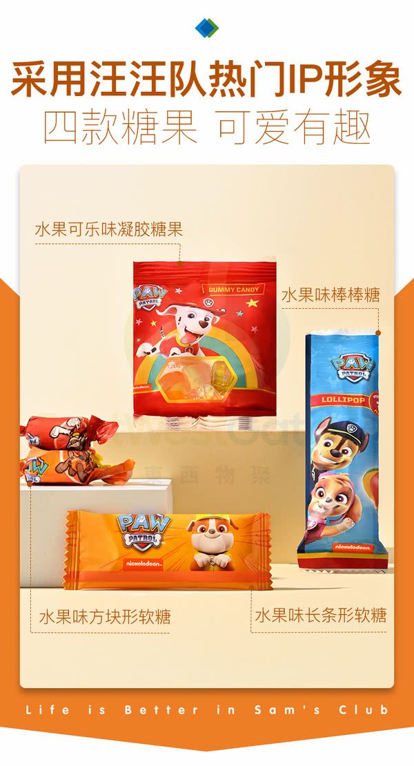 採用汪汪隊熱門IP形象,四款糖果,可愛有趣