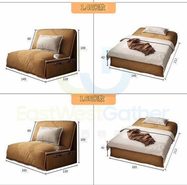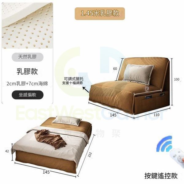 包送貨-多功能智能電動梳化床 Electric sofa bed 磨砂布-【1.45米乳膠款+脚托】小户型可折疊可伸縮兩用沙發床 伸缩床 單人床 摺疊床(T22113-07)