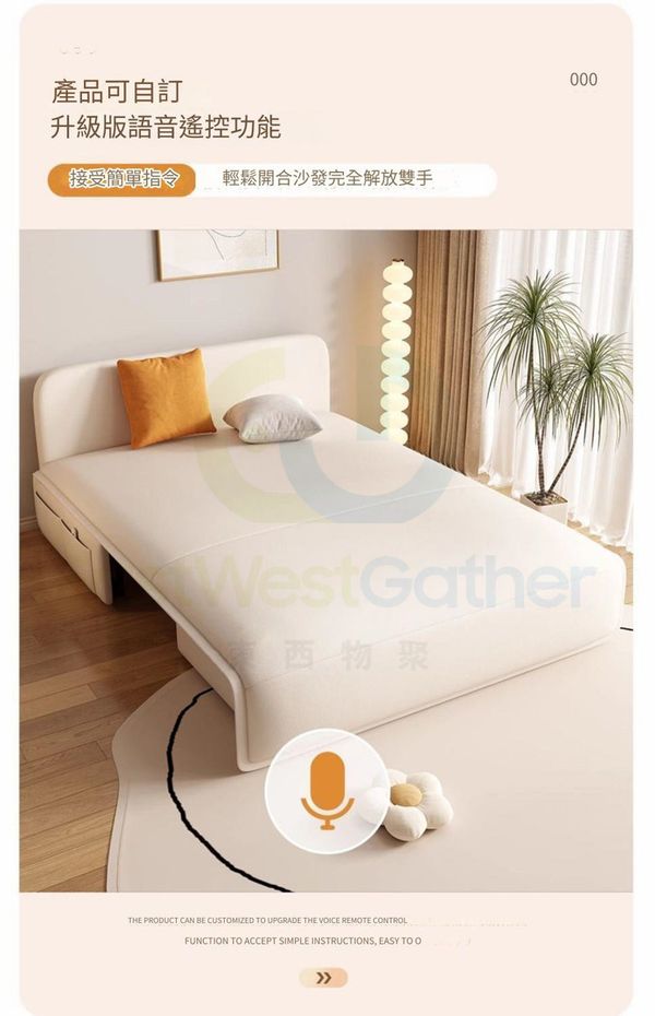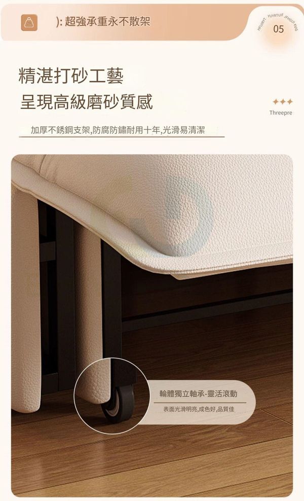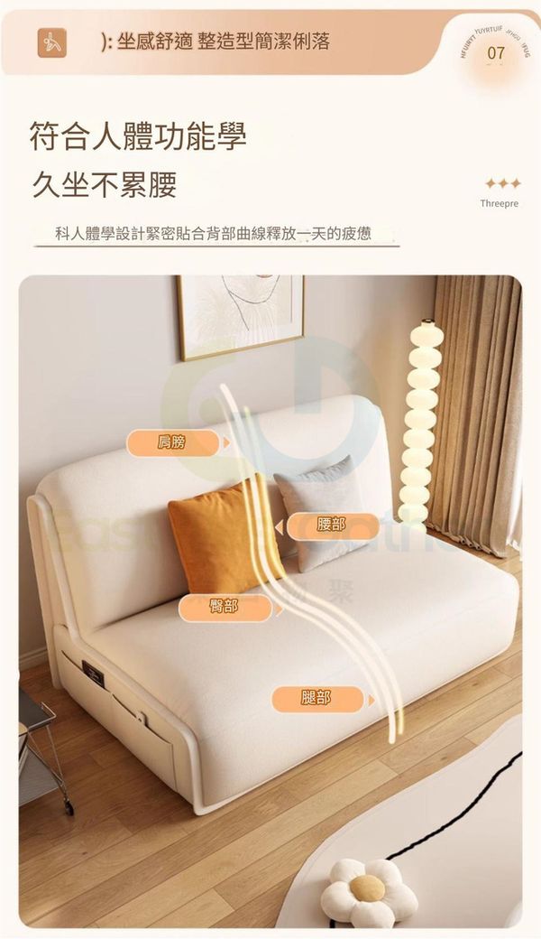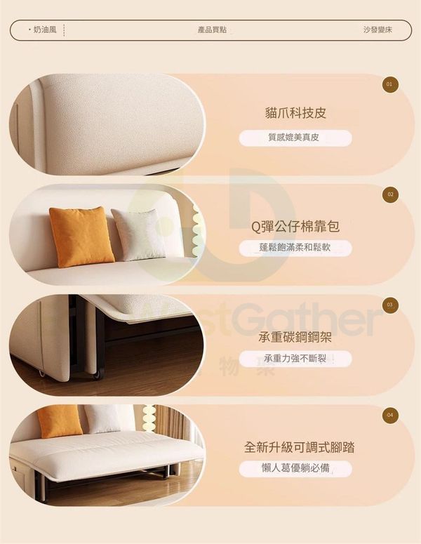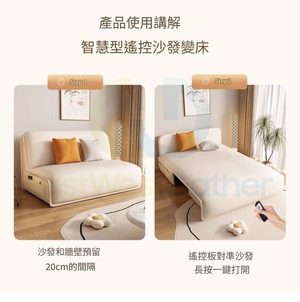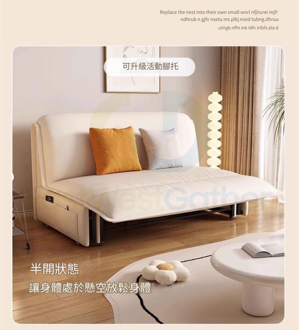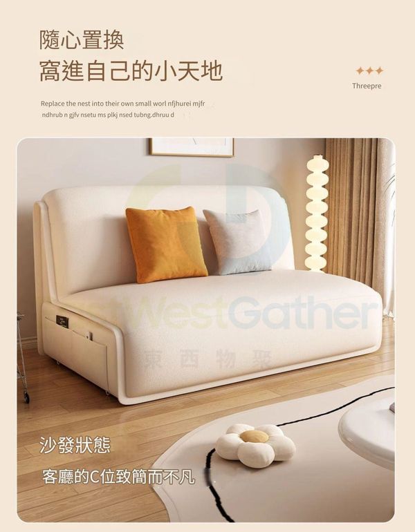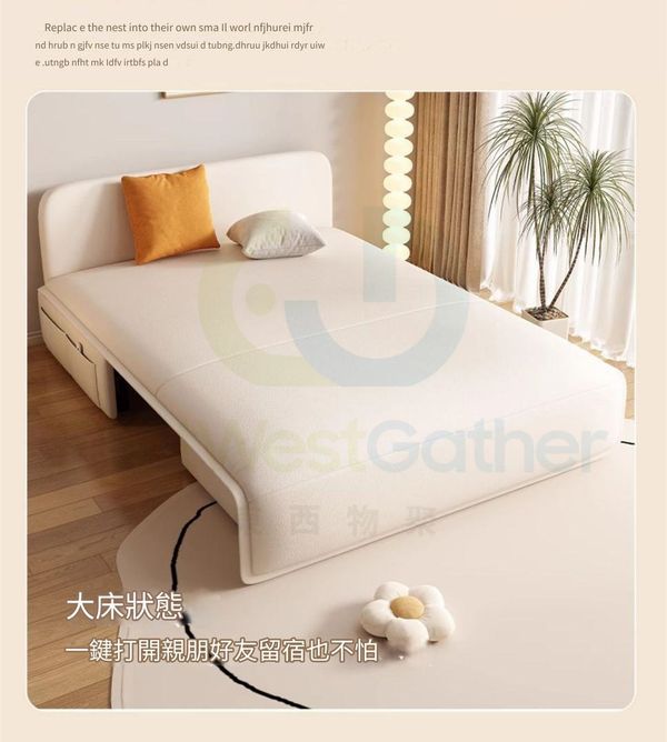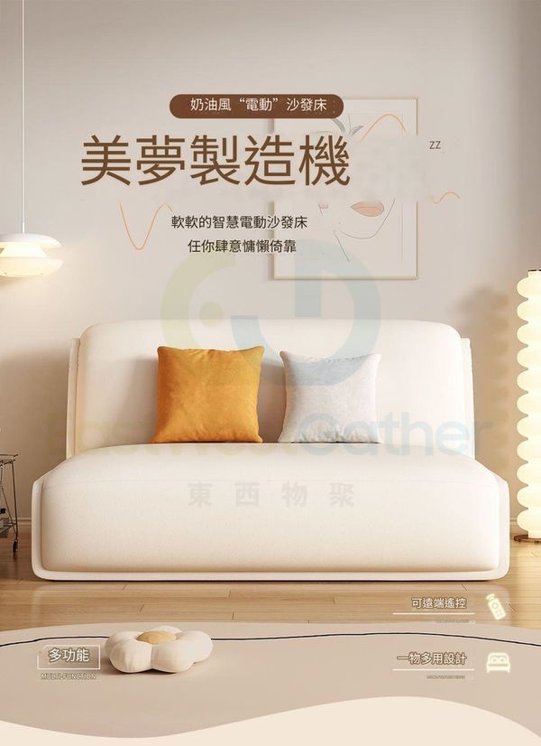 多功能現代簡約奶油風電動梳化床 沙發床 折疊兩用 小戶型陽台書房臥室【貓爪皮+腳托】