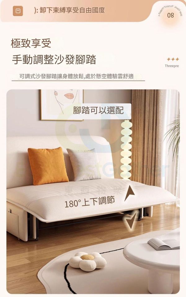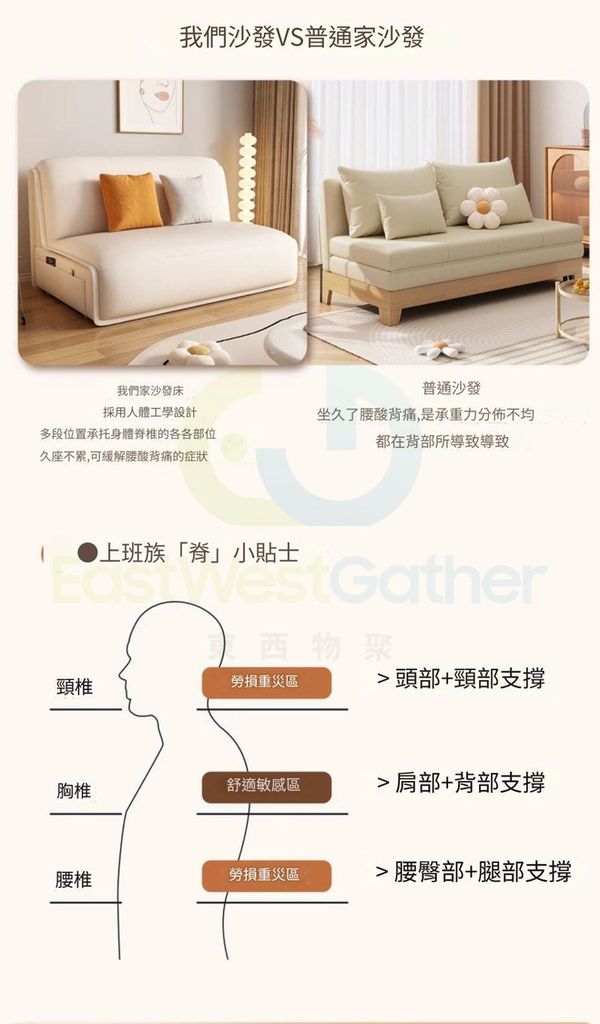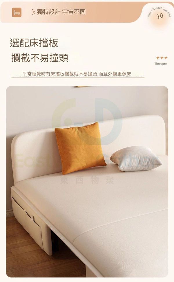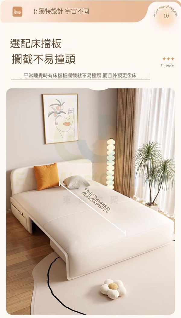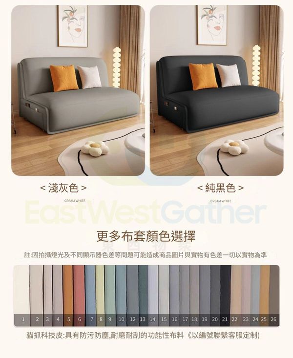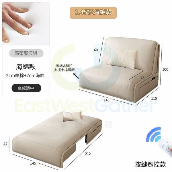 包送貨-現代簡約奶油風電動梳化床 Sofa Bed foldable bed猫抓皮-1.45米海綿款+脚托小户型多功能可折疊兩用沙發床 伸缩床 單人床 摺疊床(T22115-03)
