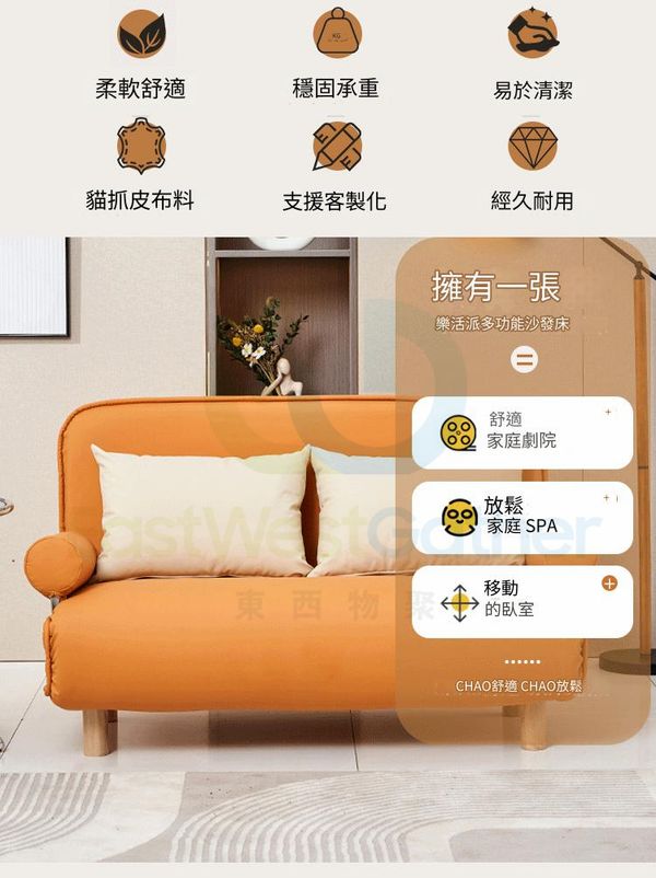 【科技布款】小戶型家用梳化床,沙發床折疊兩用陽台書房臥室