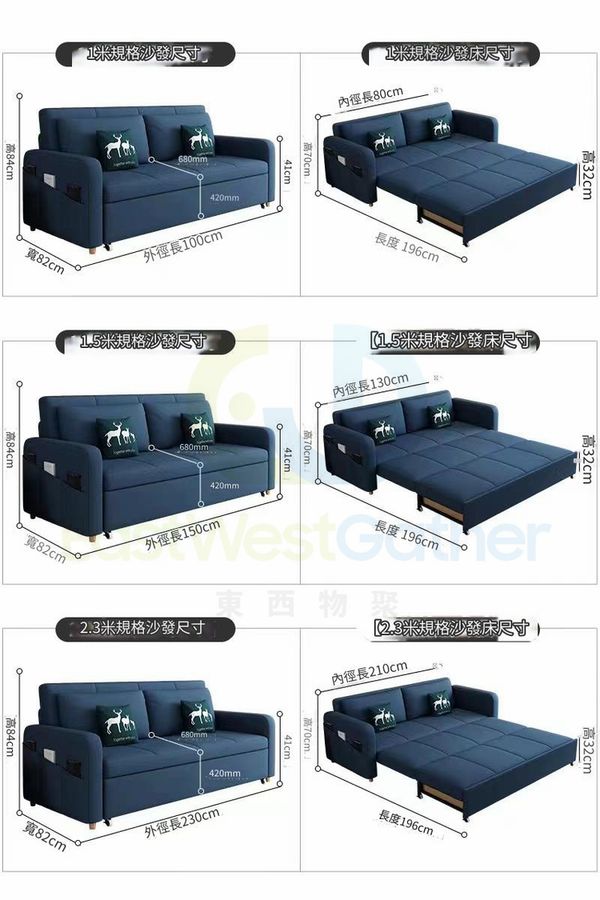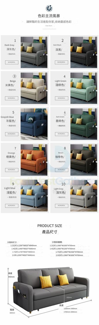 包安裝送貨-多功能可伸縮梳化床 Sofa bed 沙發床 1米乳膠款-無儲物【請備註顏色】 小戶型兩用單雙三人沙發椅 單人床 Single Bed 雙人床 三人床 摺疊床(T22143-26)